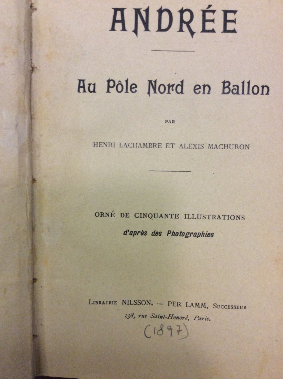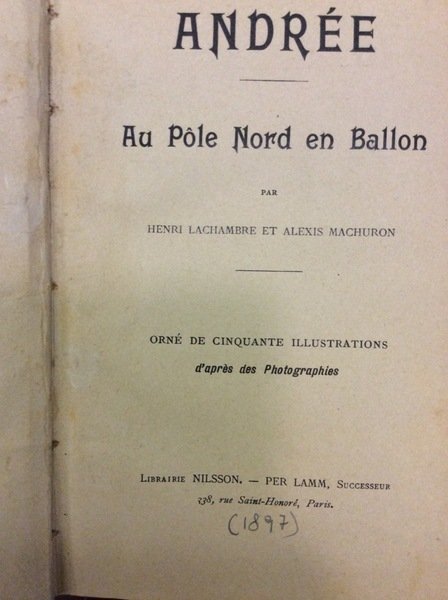 In-16 (mm. 171x112), mz. pelle coeva, titolo oro al dorso, pp. (6),250,(2), con 50 illustrazioni in bianco e nero nel testo da fotografie originali. Resoconto della tentata traversata del Polo Nord con pallone libero nel 1896, dei preparativi e del volo effettivamente intrapreso l'11 luglio 1897 dall'esploratore svedese Andrée, assieme ai due compagni Frankel e Strindberg sull'Ornen, e sua susseguente scomparsa. La spedizione si concluse tragicamente, con la morte dei tre aeronauti per freddo e stenti. "Prima edizione". Cfr. Lorenz,XV, p. 78. Esemplare ben conservato.