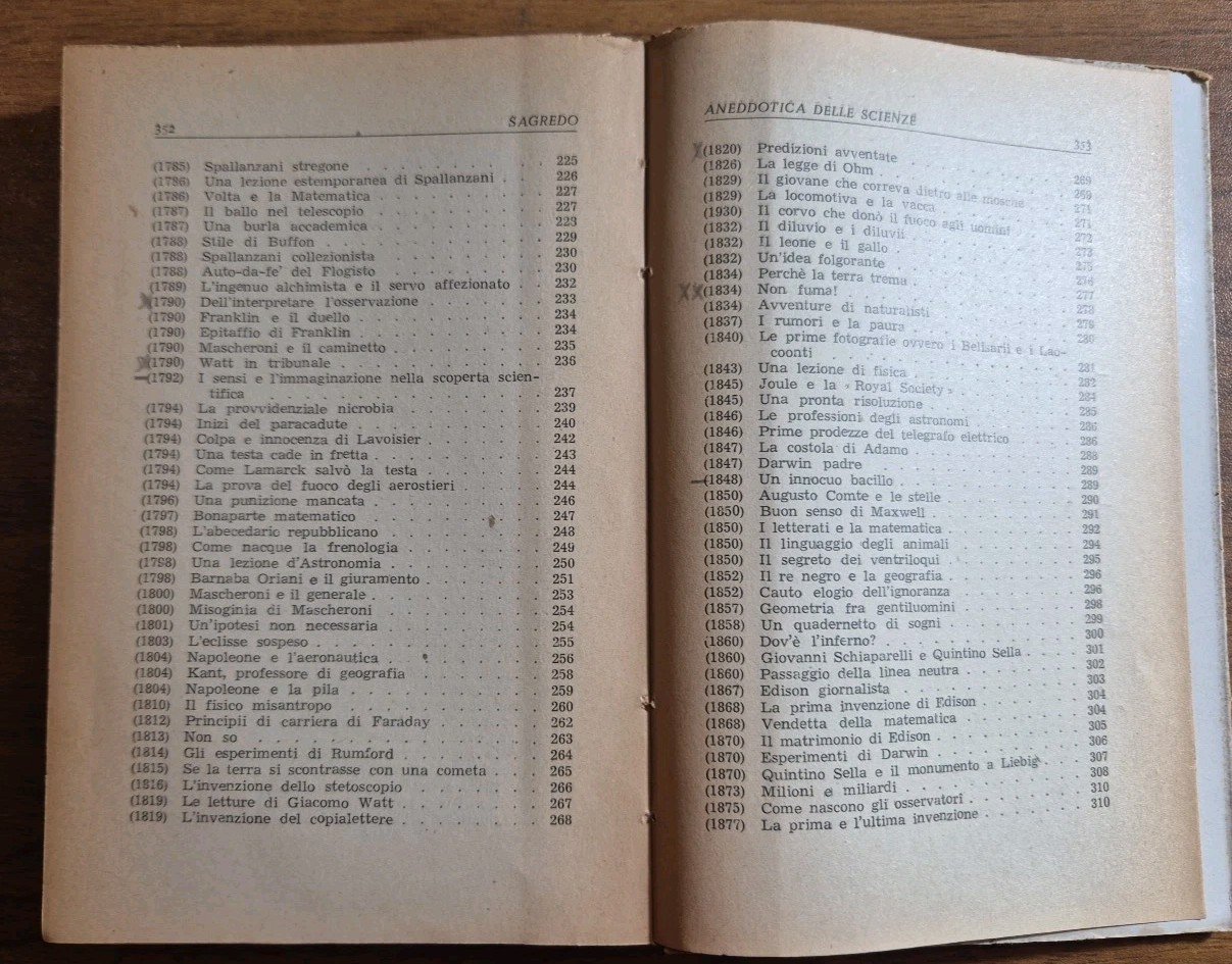 ANEDDOTICA DELLE SCIENZE di Sagredo 1948 Hoepli Manuale Libro illustrato
