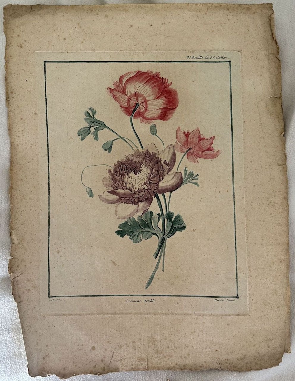 Finissima incisione realizzata nella bottega del celebre incisore Louis Marin Bonnet (1736-1793) realizzata alla "Maniere de crayon" un processo di incisione inventato da Bonnet stesso che utilizzava il lavaggio e la matita al fine di imitare il pastello originale. La tecnica inizialmente era molto laboriosa e costosa, venivano utilizzate fino a otto lastre per ogni stampa e relativamente fragile (la durata delle lastre era davvero minima). Operò da solo poi nella sua bottega di Parigi a partire dal 1772. Ampi margini, forte impressione su spessa carta vergellata. Autore: Louis Marin Bonnet su disegno di Carlo Data: 1770/80 circa Tecnica: Acquaforte e acquatinta Dimensione del foglio: 360x267 mm Dimensione incisione: 255x190 cm Condizioni: Buone. Fioriture. Piccoli strappi marginali.Very fine engraving realized in the shop of the famous engraver Louis Marin Bonnet (1736-1793) realized with "Maniere de crayon" a process of engraving invented by Bonnet itself which used the technique of washing and pencil to reproduce the original pencil. The technique was expensive and long. For each print the author used and average of 8 matrix that were so weak. He worked alone then in his shop in Paris from 1772. Wide margins, strong impression on wide phyligree paper. Autore: Louis Marin Bonnet after Carlo Date: 1770/80 circa Technique: Etching and aquatinte Leaf Dimension: 360x267 mm Engraving Dimension: 255x190 cm Conditions: Good conditions. Occasional foxing. Little tears in the margins.