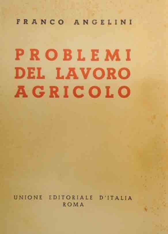 Franco Angelini, Problemi del lavoro agricolo,Unione editoriale italiana, Roma s.d. (1938?), pp. 250, cm 23, br. ed. Indice delle parti: L’azienda agricola corporativa – Per l’integrità della razza contadina – Tra economia e organizzazione. Fioriture, per il resto ben conservato