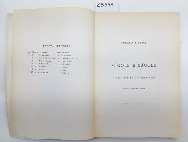 Angelo Albrigi Migole e bagole poesie dialettali bresciane ill. di O. Garosio Vannini 1964 autografato