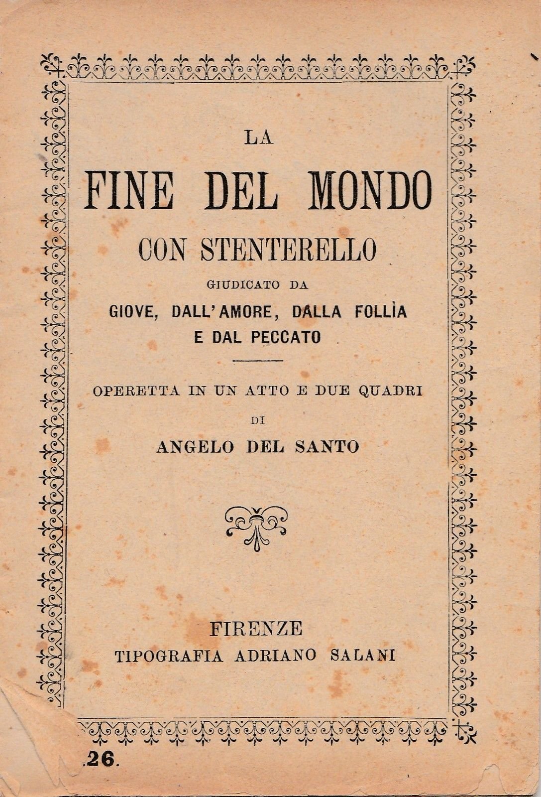 Angelo Del Santo La Fine Del Mondo Firenze Tip. Salani 1907