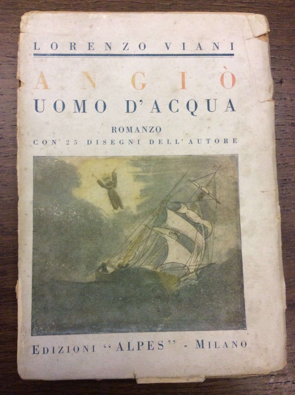 In-16 gr., brossura originale figurata a colori (mancanze al dorso e al piatto anter.), pp. 214,XXI,(3), con 25 tavole fuori testo che riproducono disegni originali eseguiti da Viani. In appendice: "Elenco alfabetico dei termini marinareschi e delle voci meno comuni usate in questo romanzo". "Prima edizione". Lievi ingialliture per la qualità della carta, altrimenti testo e tavole ben conservate.