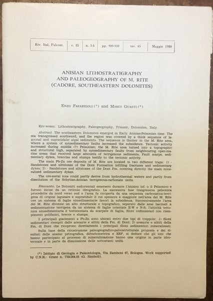 Opuscolo (leaflet), extrat from the magazine Rivista Italiana di Paleontologia, n. 3-4, maggio 1980. Molto buono (good conditions), 20 pp, ill. bn