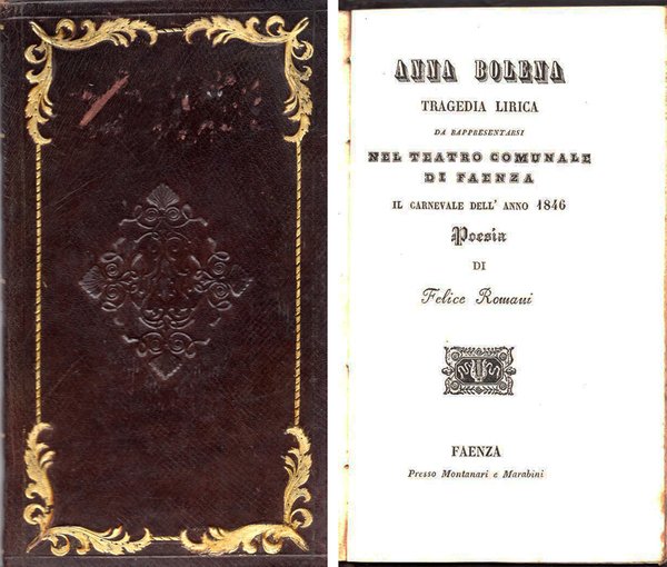 Libretto d’opera. Teatro Comunale di Faenza, Carnevale 1846. Elenco dei personaggi completo dei nomi degli interpreti tra cui Bianca Fetò e Antonio Carapia.