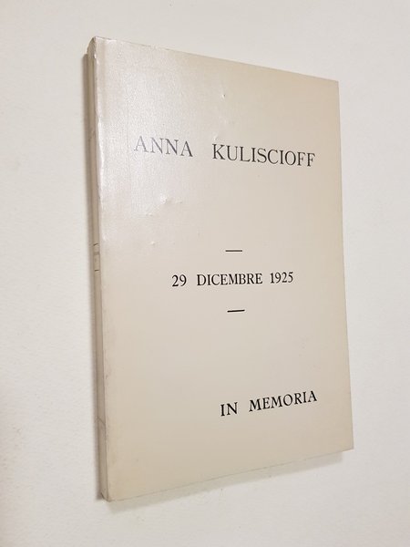 Anna Kuliscioff. In memoria. 29 dicembre 1925.