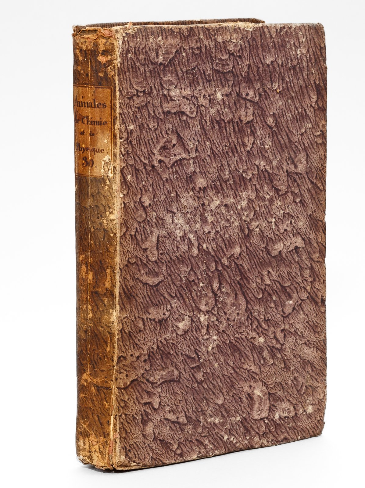 1 vol. in-8 cartonnage marbré de l'époque, Chez Crochard, Paris, 1825, 448 pp. avec 2 planches dépliantes. Contient notamment : Suite du Mémoire de M. Ampère sur une nouvelle Expérience électro-dynamique, sur son application à la formule qui représente l'action mutuelle de deux élémens de conducteurs voltaïques, et sur de nouvelles conséquences déduites de cette formule (Ampère) ; Mémoire sur la Voix humaine (Félix Savart) ; Recherches relatives à l'Influence de la température sur les forces magnétiques (A.-F. Kupffer) ; Mémoire sur les Roues verticales à palettes courbes mues par dessous, suivi d'expériences sur les effets mécaniques de ces roues (Poncelet) ; Lettre de M. Marcel de Serres à M. Gay-Lussac sur les Cavernes à ossemens ; De l'Influence exercée par divers milieux sur le nombre de vibrations des corps solides (Félix Savart) ; etc. Rare exemplaire de l'important tome 30 des "Annales de Chimie et de Physique" contenant la suite de l'article d'André Marie Ampère "Mémoire sur une nouvelle Expérience électro-dynamique" (pp. 29-41) qui sera intégré dans son Mémoire de 1827, et celui de Félix Savart (Mémoire sur la Voix humaine, pp. 64-86) . Etat très satisfaisant (cartonnage lég. frotté avec petit accroc au dos en tête, bon état intérieur)
