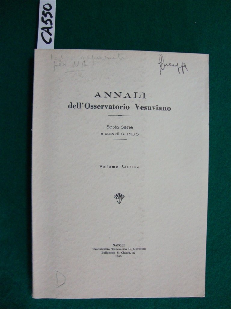 Sesta serie - Volume Settimo. Tra gli altri argomenti : rilievi magnetici del Cratere di Astroni. Opera corredata da numerose tabelle di natura scientifica e carte più volte ripiegate - DETTAGLIO DELLE CONDIZIONI : Firma di originaria appartenenza in coperta - .
