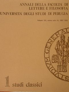 ANNALI DELLA FACOLTÀ DI LETTERE E FILOSOFIA, UNIVERSITÀ DEGLI STUDI DI PERUGIA. Volume XX, nuova serie VI, 1982/1983. I studi classici.