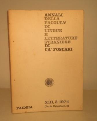 ANNALI DELLA FACOLTA' DI LINGUE E LETTERATURE STRANIERE DI CA' FOSCARI - IX, 3 1974(SERIE ORIENTALE, 5)