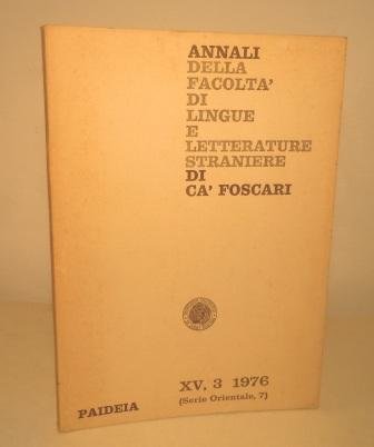 ANNALI DELLA FACOLTA' DI LINGUE E LETTERATURE STRANIERE DI CA' FOSCARI - IX, 3 1976 (SERIE ORIENTALE, 7)