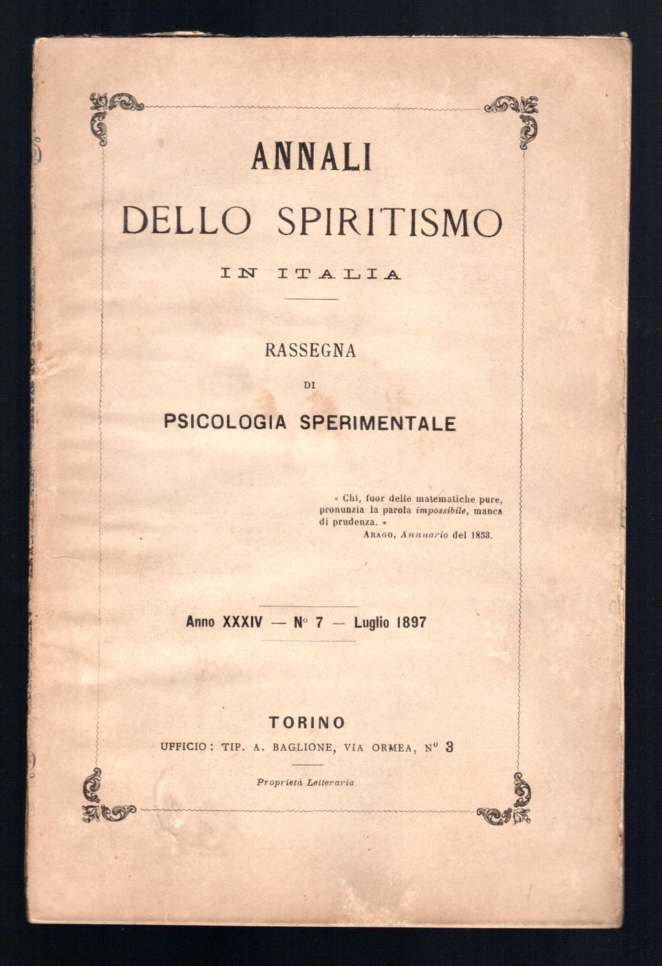 Annali dello Spiritismo in Italia - Rassegna di psicologia sperimentale