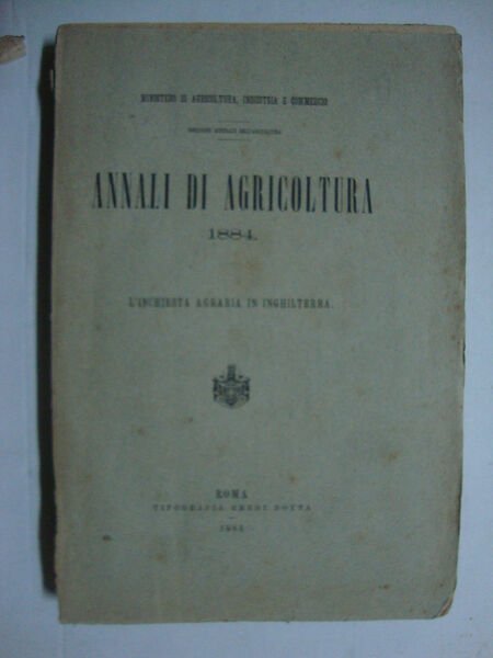 (Collana : Annali di agricoltura - n. 60) A cura del Ministero di Agricoltura, Industria e Commercio - In calce al vol. prospetti statistici ripiegati (64f).
