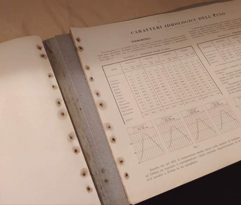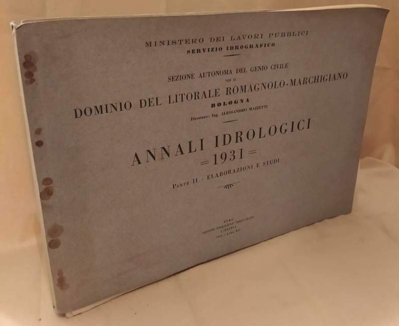 Sezione Autonoma del Genio Civile per il dominio del litorale romagnolo-marchigiano. Bologna. Direttore: Ing. Alessandro Mazzetti. In 8^ album, punti di metallo, bross., pp. 193. Cop. staccata dal corpo, alcune parti sciolte, segni di ruggine sui residui dei punti metallici su tutte le pagine. Discrete condizioni ***Due to bureaucratic reasons, books dated over 70 years old cannot be immediately exported, please contact us before placing the order.***