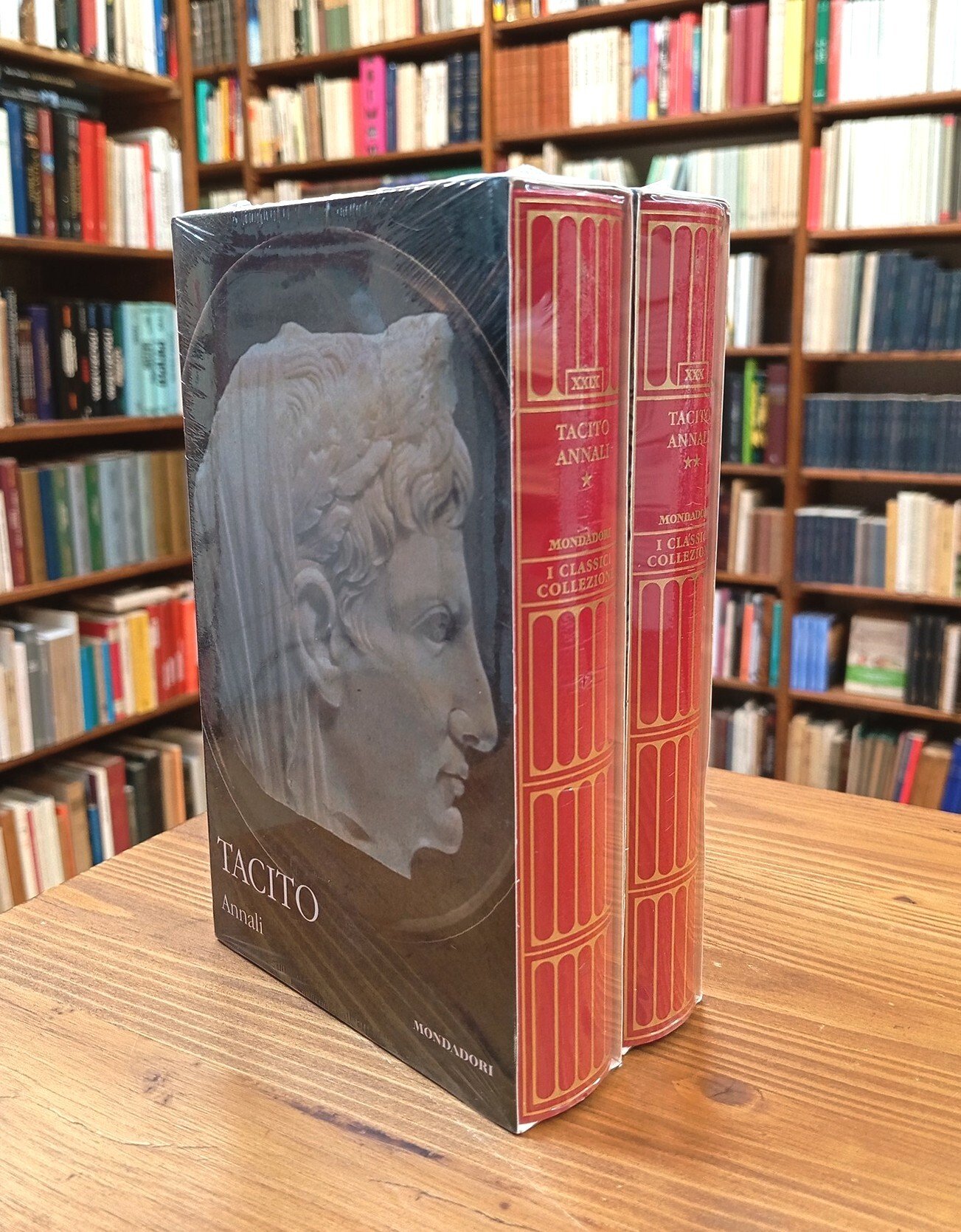 Collana "I Classici Collezione". Edizione abbinata ai periodici del gruppo Mondadori - Opera completa di due volumi in copertina rigida rilegati in similpelle rossa con titolo oro al dorso, custodie editoriali figurate, nastrini segnapagina; xli-728 + 728 pagine con testo latino a fronte; a cura di Lidia Pighetti; prefazione di Luca Canali. Copie in condizioni di nuovo, ancora sigillate.