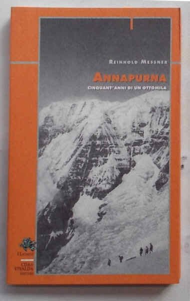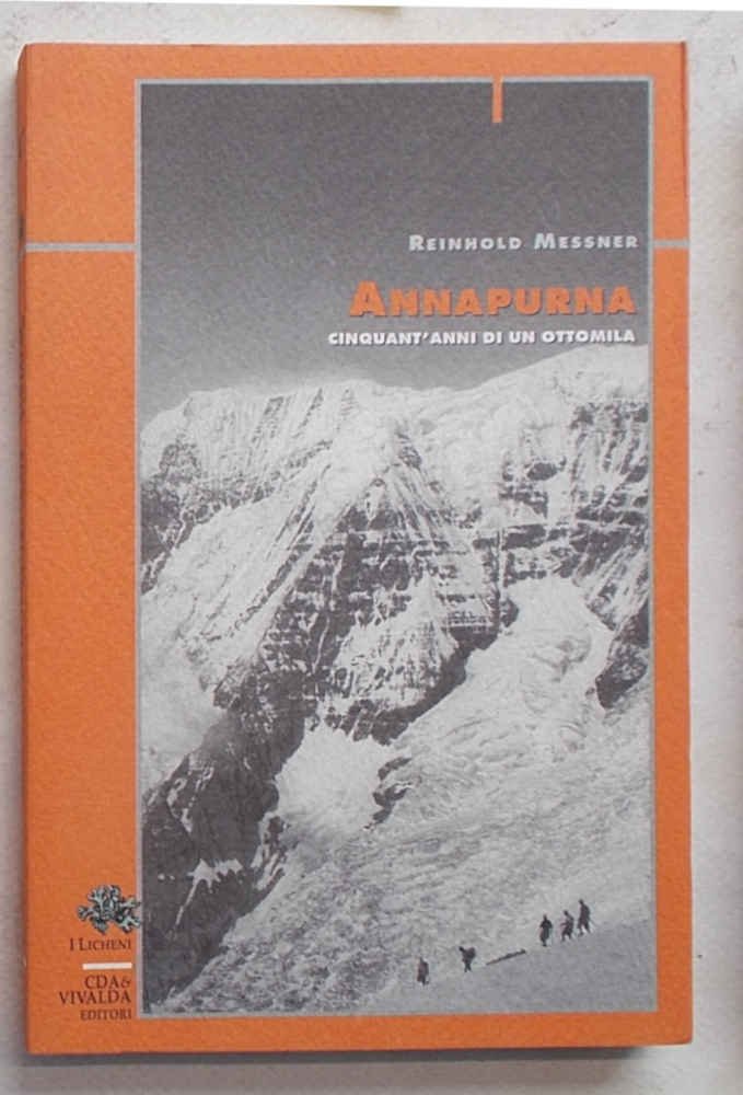 In 8° (cm. 20 x 12,5); pagg. 158; con 21 tavole fotografiche f.t.; leggera carton. originale figur. a colori. VG+. ** Completo della fascetta editoriale che recita: "La conquista del primo ottomila raccontata da Messner". Collana "I Licheni", 47. Prima edizione. "A distanza i cinquant'anni dalla conquista dell'Annapurna, il primo ottomila raggiunto dall'uomo, Messner ricostruisce la storia delle principali spedizioni."