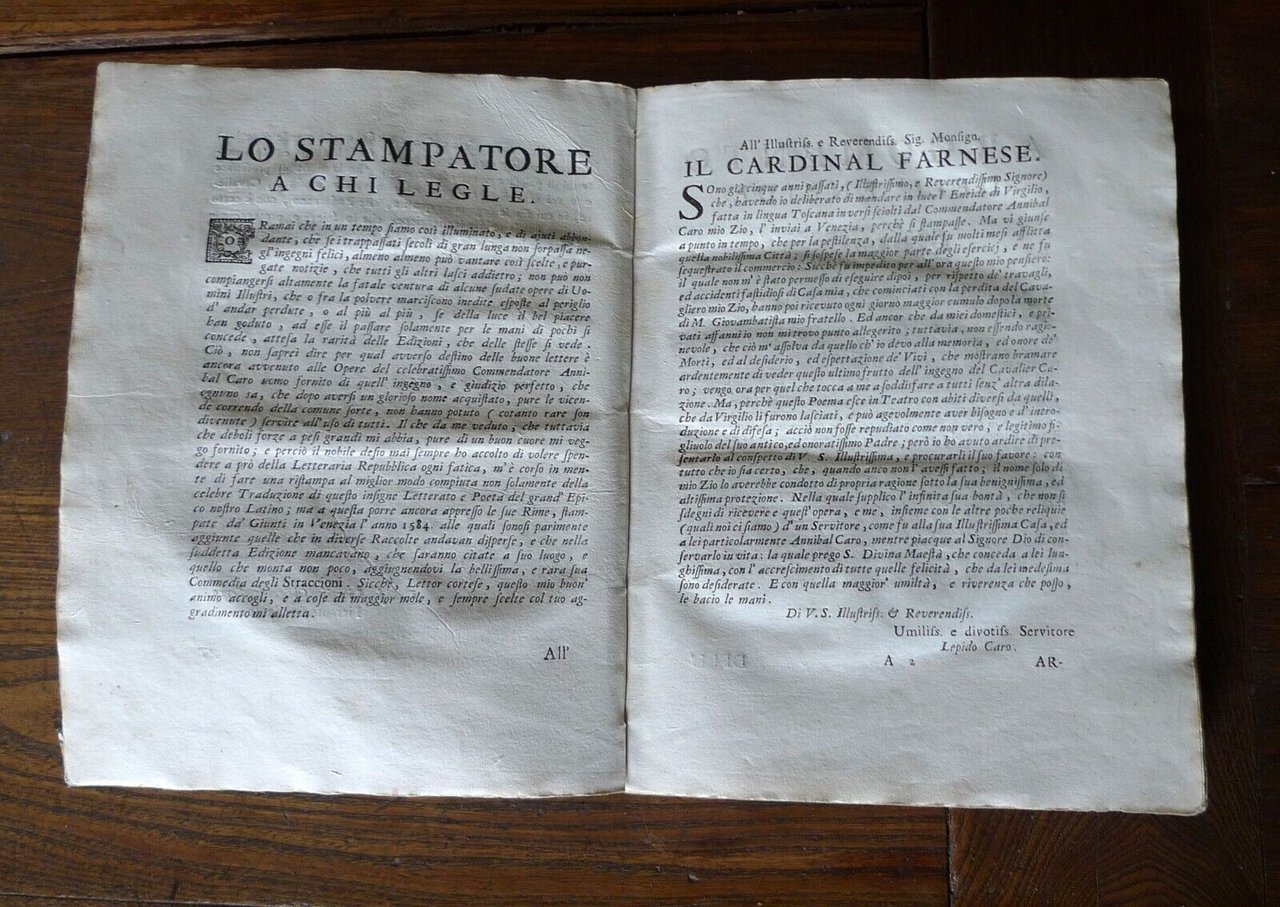 ANNIBAL CARO,L'ENEIDE DI VIRGILIO,LA COMMEDIA DEGLI STRACCIONI,RIME,1728 Berno