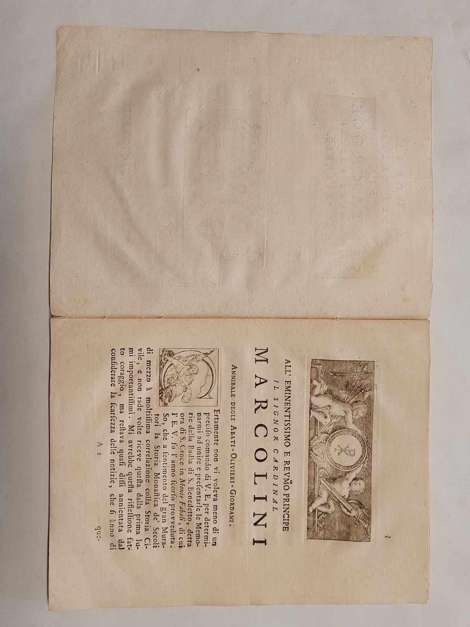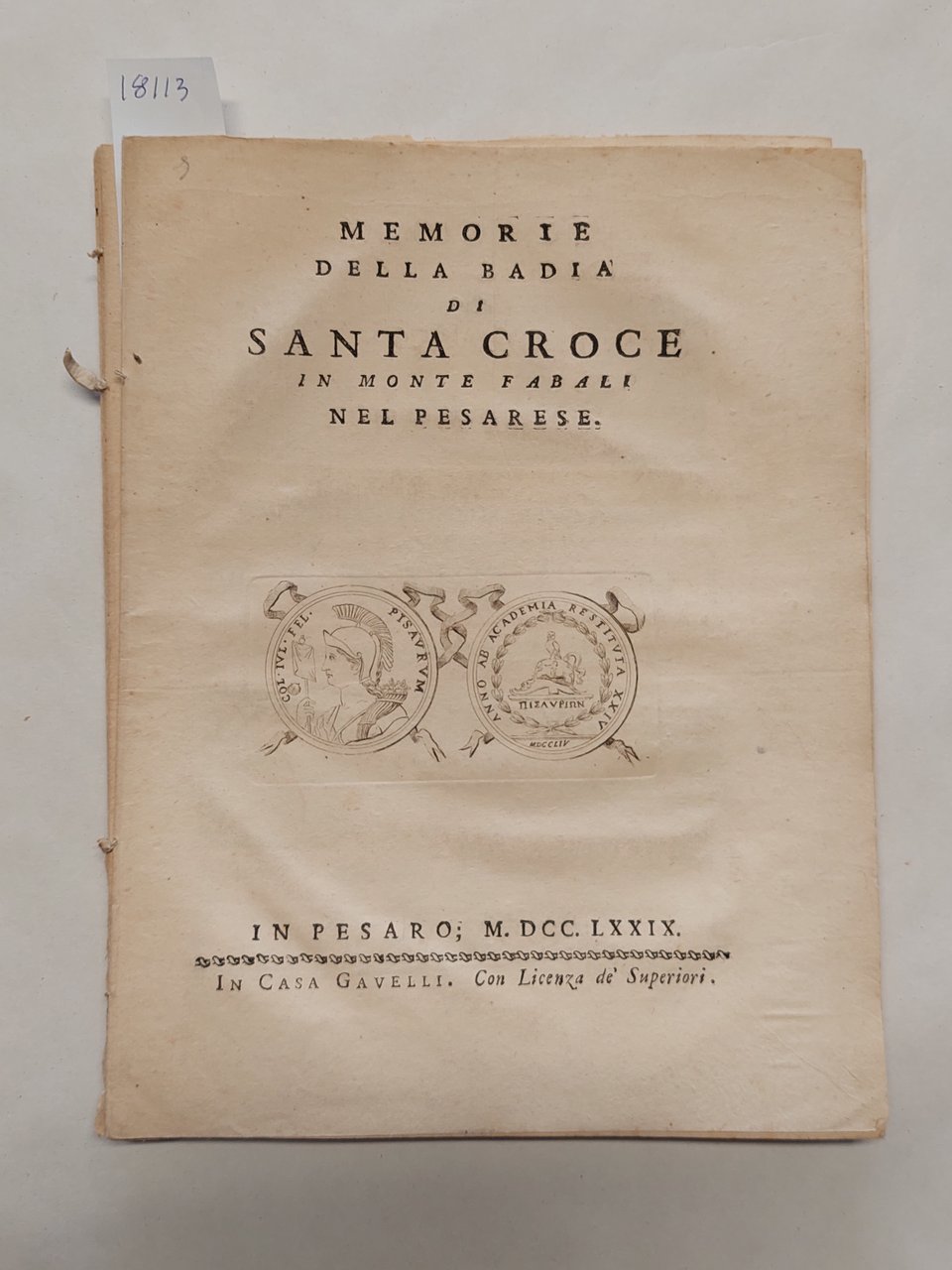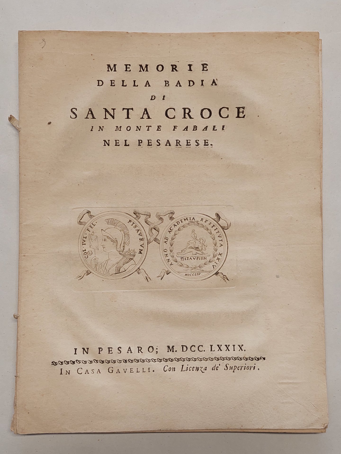 Annibale degli Abbati Olivieri Giordani Memorie della Badia di Santa Croce in Monte Fabali nel Pesarese casa Gavelli 1779