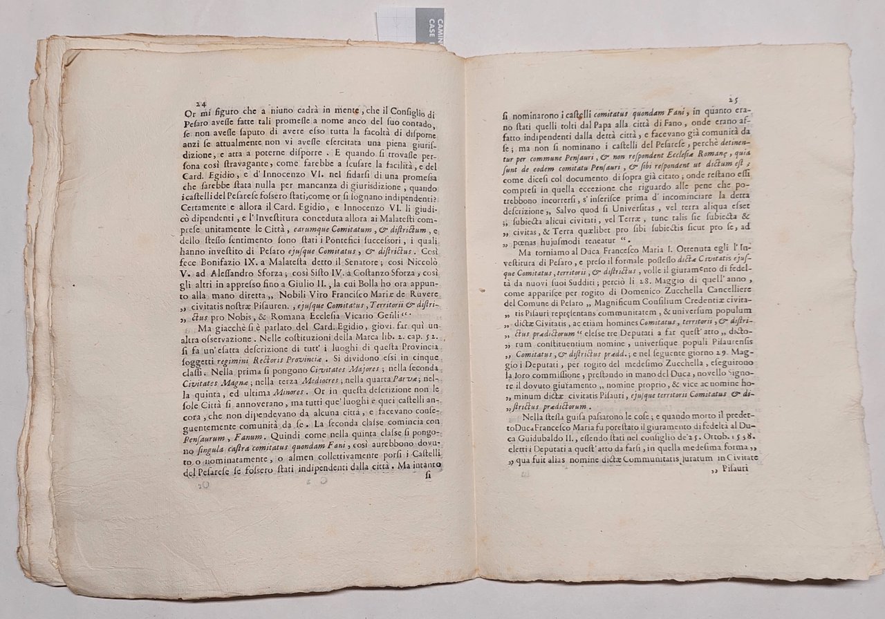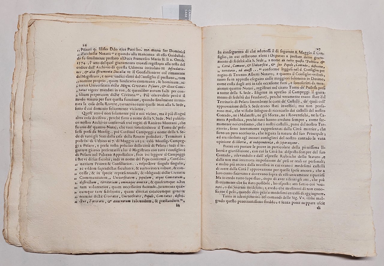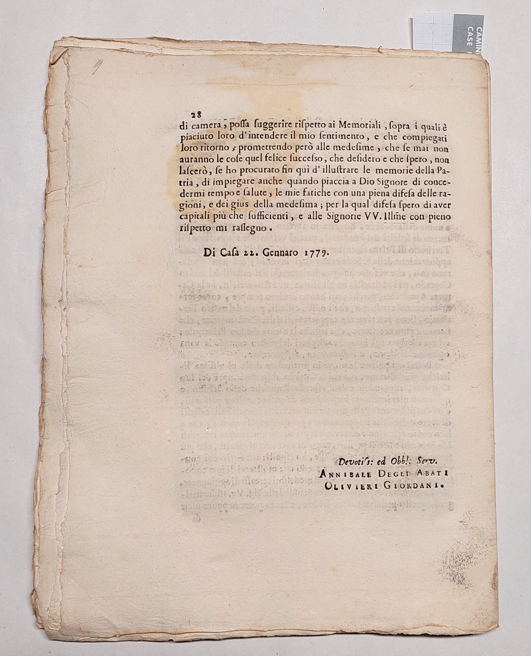 Annibale degli Abbati Olivieri Giordani Riflessioni sopra un ricorso dato da alcuni Castelli del pesarese. A S. E. Reverendissima Monsignor Livizzani Presidente