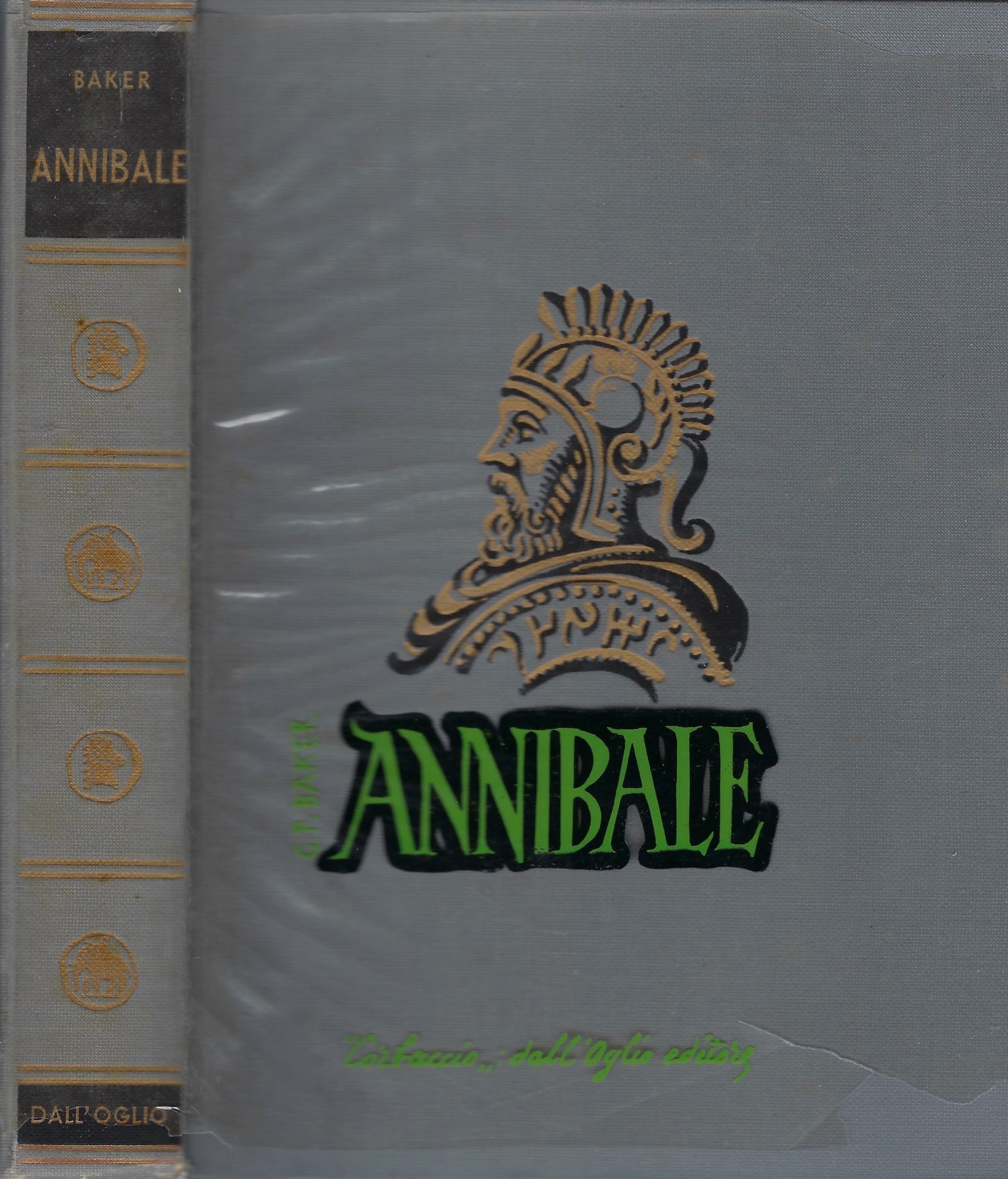 Sovraccoperta trasparente usurata con strappi e pezzettini mancanti.