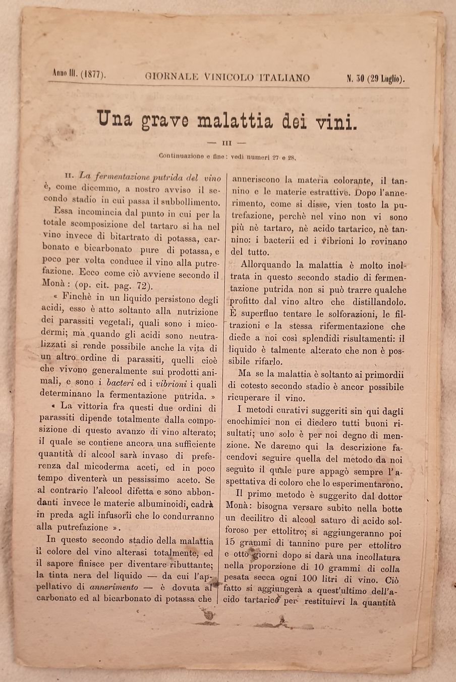 ANNO III 1877 N. 30 29 LUGLIO GIORNALE VINICOLO ITALIANO
