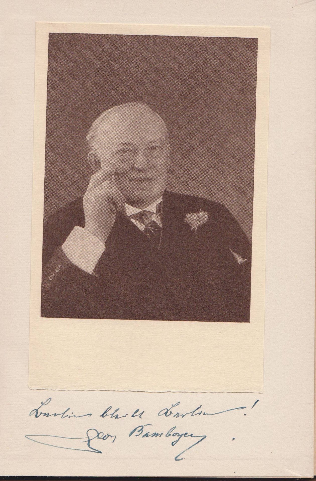 Mit handschriftlicher Autorenwidmung mit Signatur auf Vorsatz: "Berlin bleibt Berlin!" und einer montierten Autoren-Porträtkarte nach einer sw Photographie.