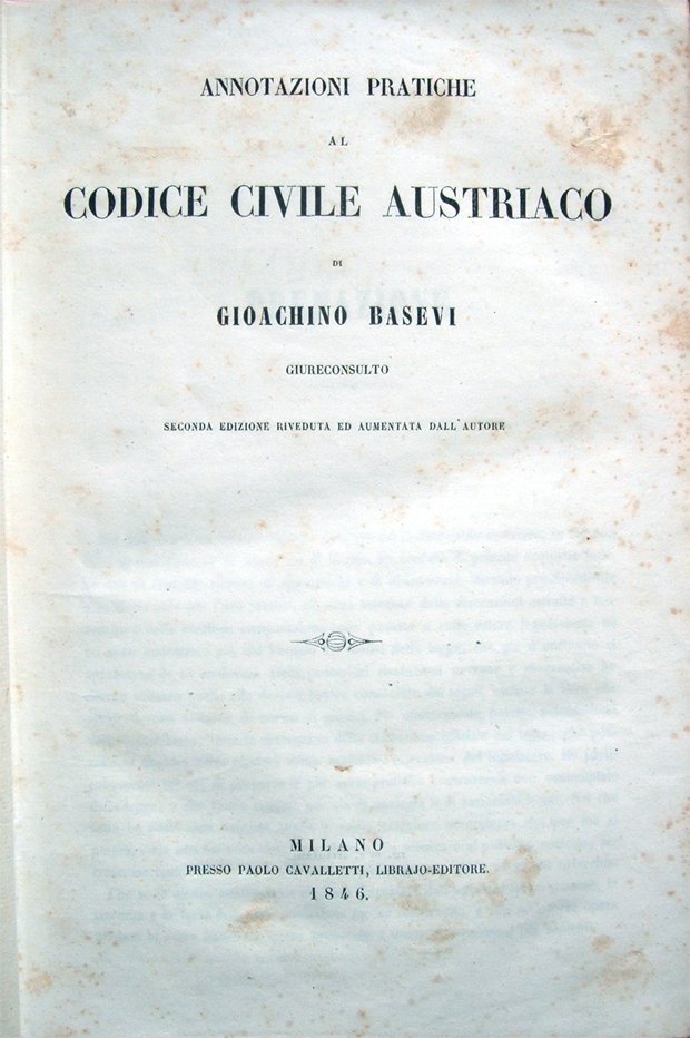 Annotazioni pratiche al Codice civile austriaco di Gioachino Basevi, giureconsulto. Seconda edizione riveduta ed ampliata dall'autore