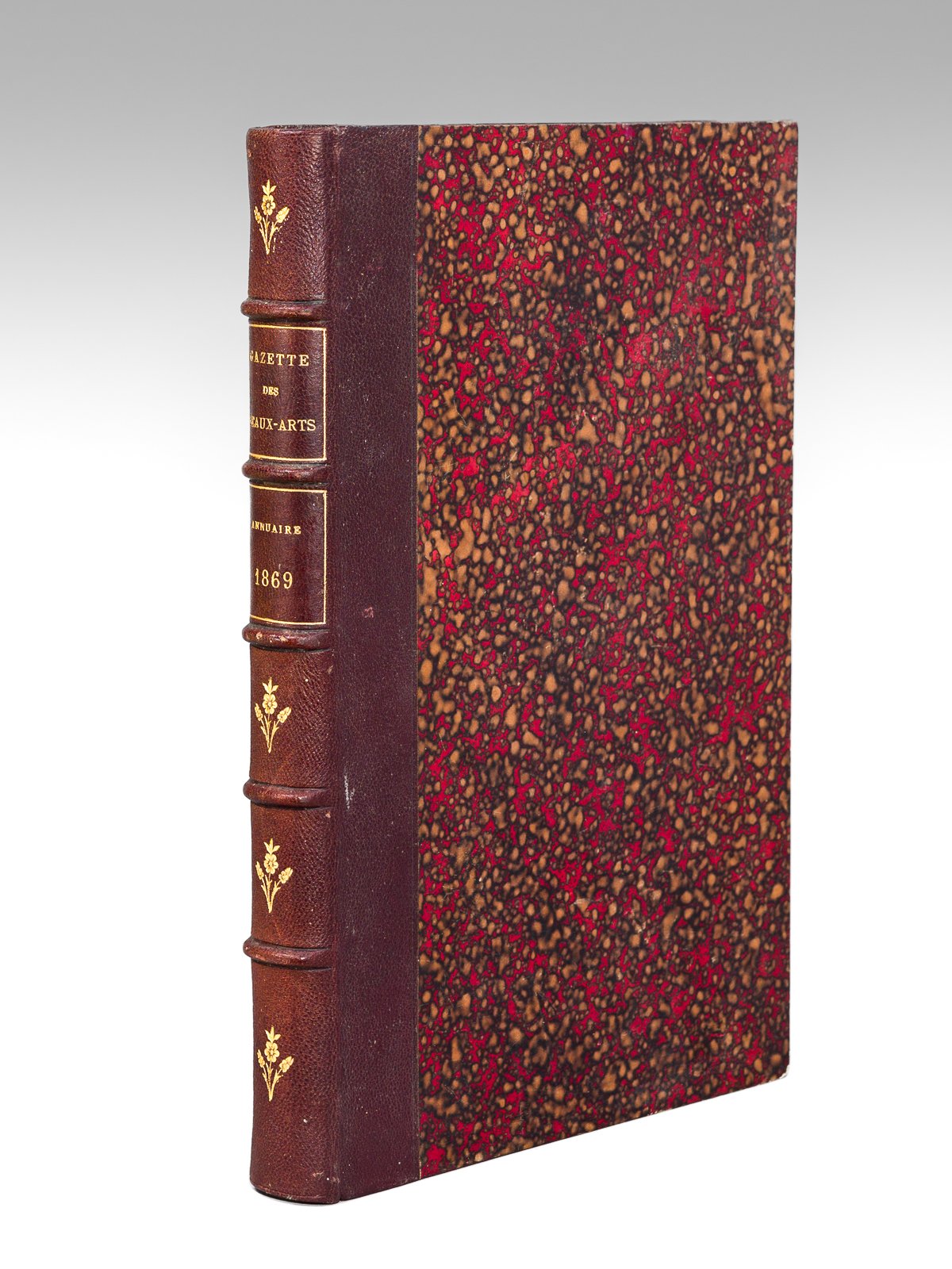 1 vol. petit in-4 reliure de l'époque demi-chagrin brun, dos à 5 nerfs orné, Au Bureau de la Gazette des Beaux-Arts, 1869, LXXXVI-294 pp. 1 f. , 8-32 pp. L'annuaire est suivi du "Catalogue des Gravures et Eaux-Fortes publiées par la Gazette des Beaux-Arts". Bon exemplaire de belle provenance, de la bibliothèque d'Alidor Delzant (1848-1905), avec son bel et grand ex-libris en garde (un cahier bruni, superbe fraîcheur par ailleurs). Alidor Delzant fut le secrétaire et exécuteur testamentaire des frères Goncourt et du grand critique et écrivain Paul de Saint-Victor.