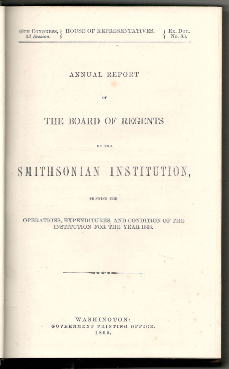 Annual report of the board of regents of the Smithsonian Institution. Showing the operations, expenditures and condition of the Institution for the year 1868
