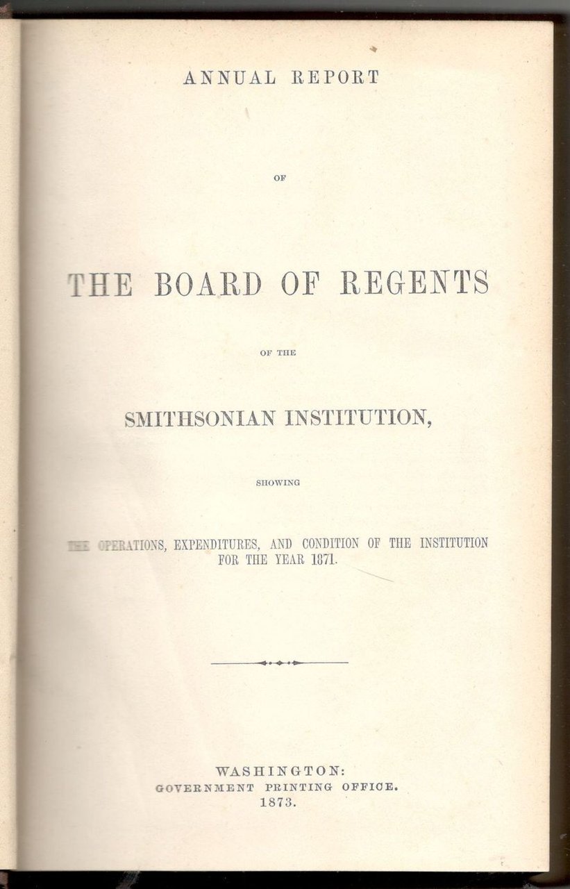 Annual report of the board of regents of the Smithsonian Institution. Showing the operations, expenditures and condition of the Institution for the year 1871.
