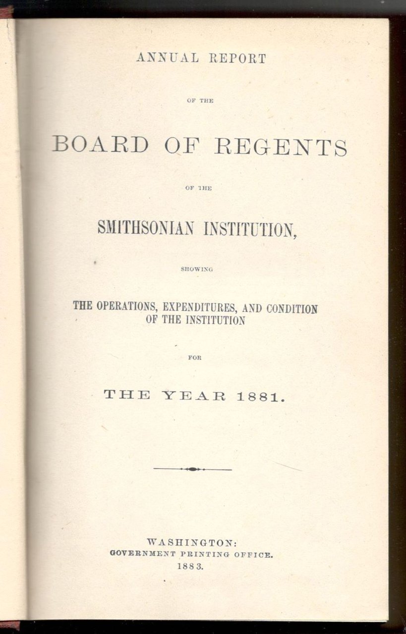 Annual report of the board of regents of the Smithsonian Institution. Showing the operations, expenditures and condition of the Institution for the year 1881.
