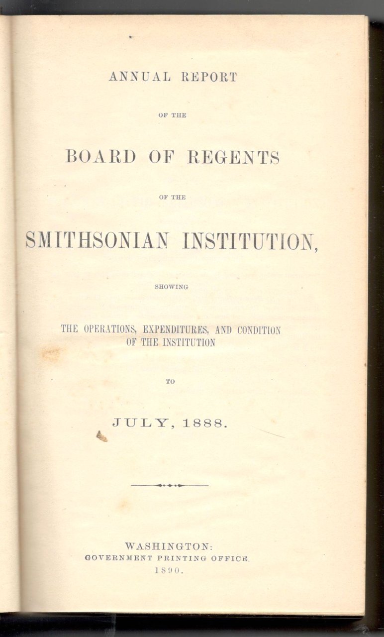 Annual report of the board of regents of the Smithsonian Institution. Showing the operations, expenditures and condition of the Institution to July, 1888