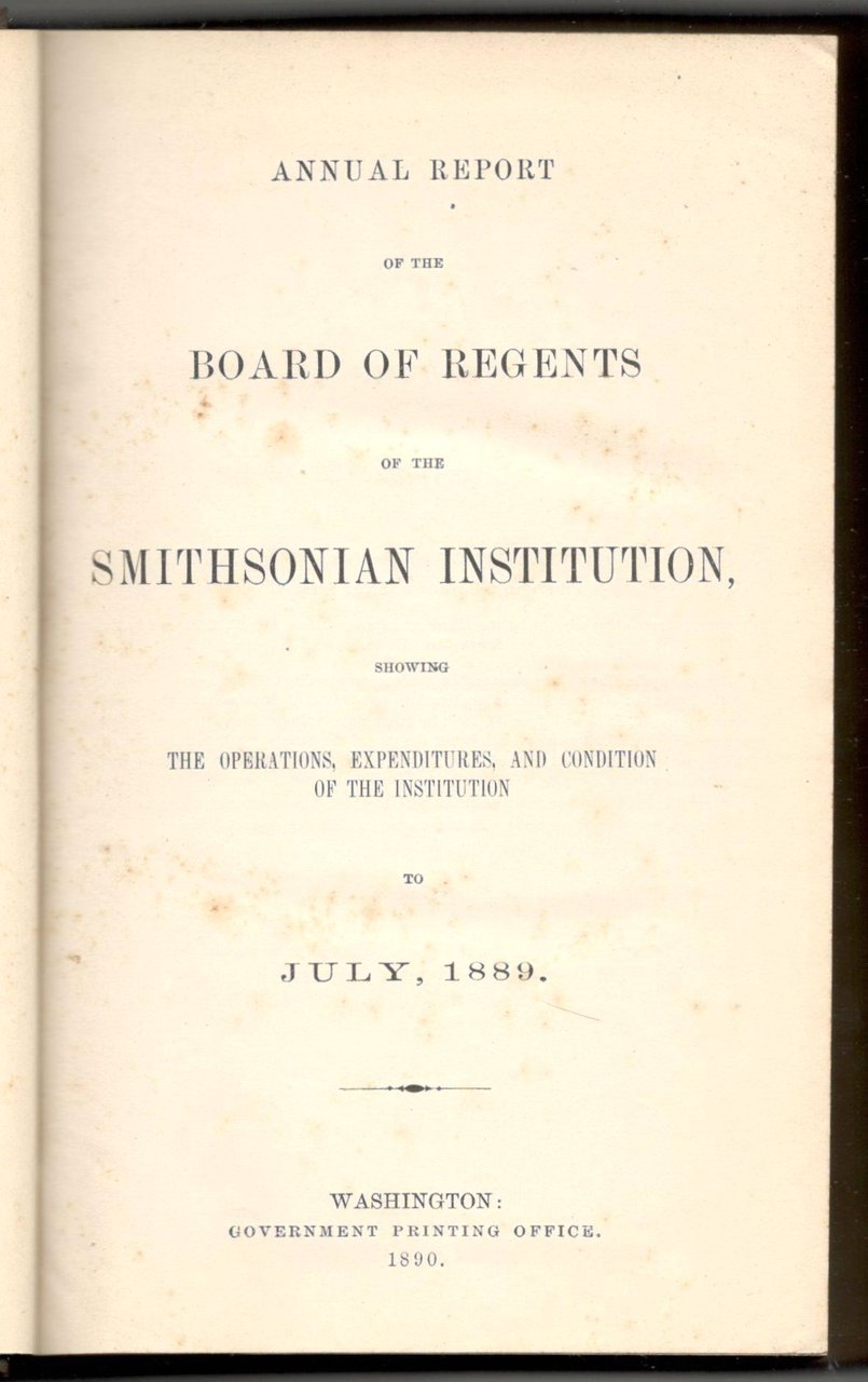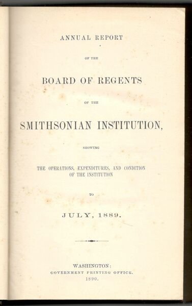 Annual report of the board of regents of the Smithsonian Institution. Showing the operations, expenditures and condition of the Institution to July, 1889