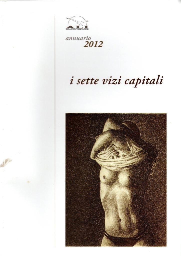 Annuario 2012. I sette vizi capitali, prima edizione giugno 2012, pp. 318, formato 17 x 24.Copertina morbida illustrata da un'acquaforte di Roberto Tonelli (Mettere a nudo). All'interno numerose tavole illustrate a colori e in b/n. Tiratura di 500 copie.Piccola Macchia al piatto anteriore. Nel complesso condizioni molto buone.