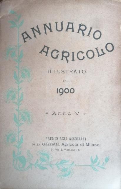 Gazzetta Agricola, Milano, 1900. Premio agli Associati della “Gazzetta Agricola di Milano”. In 8vo, pp. 256 + alcune pubblicitarie, bross. in carta orig. Usuale ingiallimento e piccoli difetti di copertina, scompaginato. .