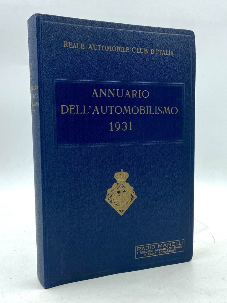 Tela editoriale blu con titoli e fregi dorati, cm 21x14, pp 298 CXLV (5), numerose illustrazioni in nero, alcune tavole a colori. Eccezionale stato di conservazione per questo annuario automobilistico sponsorizzato da Radio Marelli, illustrato da alcune belle tavole a colori di gusto deco’ (tra queste la Fiat 522, il carro camper TANDEM CAR CISA) e da un segnalibro Shell illustrato a colori.