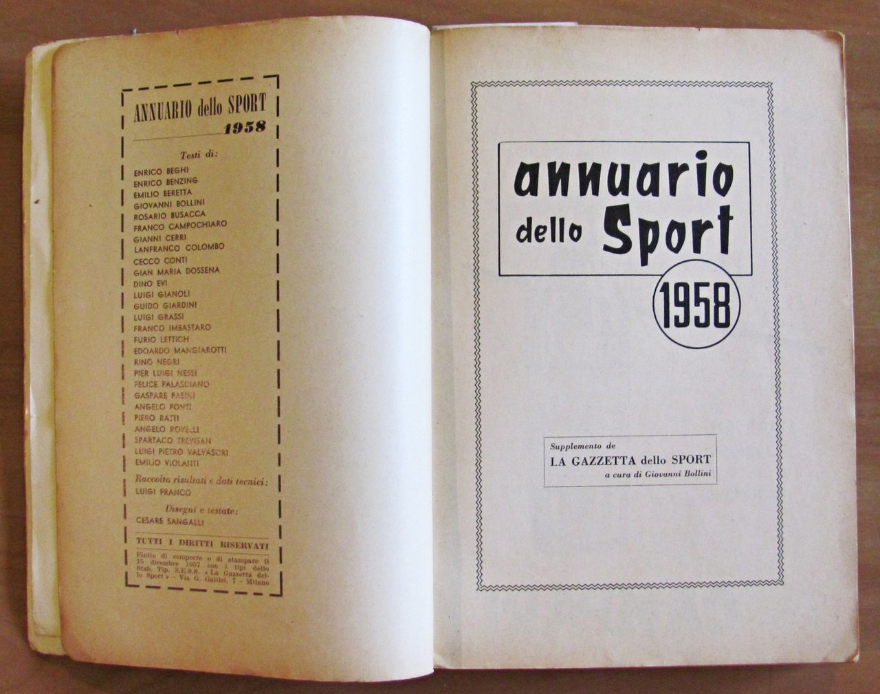 ANNUARIO DELLO SPORT 1958 - Primati - Risultati - Commenti - Fotografie dell'annata sportiva 1957