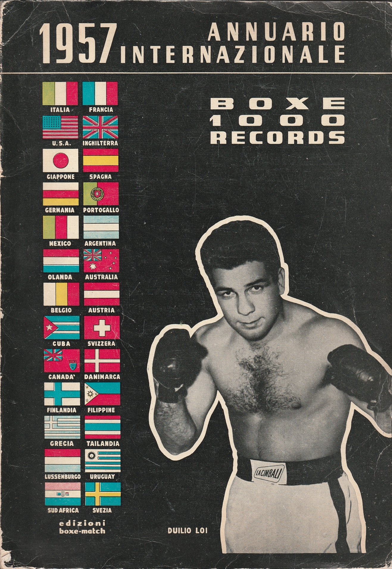 Brossura editoriale, titoli al piatto e al dorso, numerosi ritratti fotografici di pugili in b/n nel testo, contiene curiosità storiche sui campioni del mondo, i records per pugile e le classifiche per nazioni, segni d'uso alla brossura e piccola mancanza alla testa del dorso, all'interno ottimo.