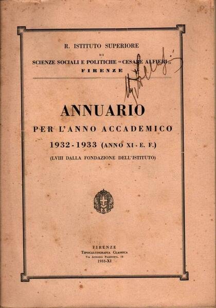 "Annuario per l'anno accademico 1932-1933", edizione 1933, pp. 171, formato 17 x 24.