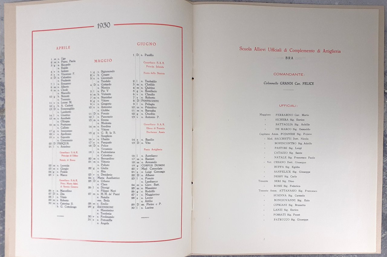Con calendario e nominativi degli Ufficiali, Sottoufficiali, Allievi Ufficiali