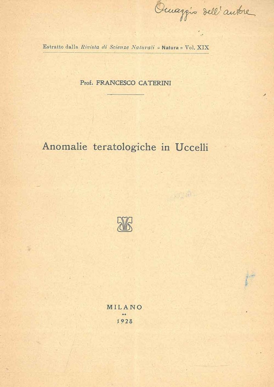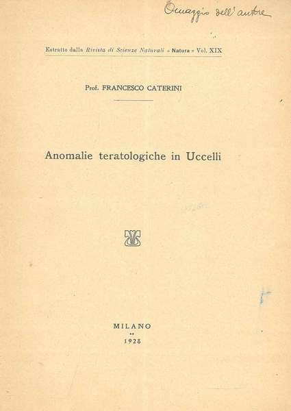 Anomalie teratologiche in uccelli Estratto dalla Rivista si scienze naturali "Natura" vol. xix