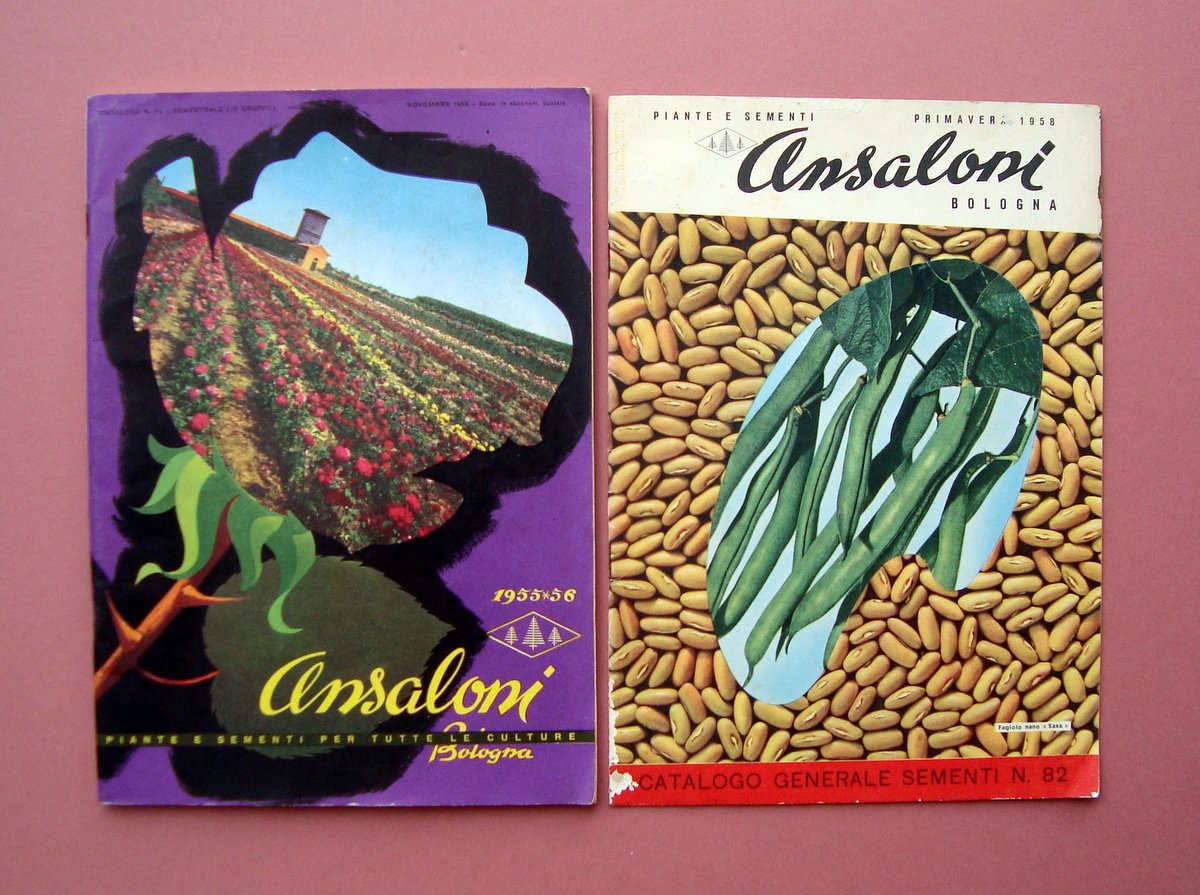 Ansaloni Bologna due Cataloghi 1955-56 Primavera 1958 Sementi Piante Bulbi