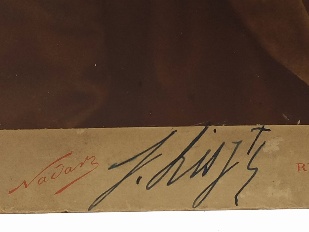 fotografia originale di dimensioni 10,3 X 14,5 cm circa, incollata su un cartoncino rigido (anch'esso originale) di dimensioni: 11 x 16,5 cm circa. Nella parte inferiore del cartoncino è stampato l'indirizzo e il nome del grande fotografo francese NADAR (pseudonimo di Gaspard-Félix Tournachon).Sul margine inferiore del cartoncino, a penna blu, è altresì presente l'autografo del famoso compositore ritratto nella foto (Franz Liszt). STATO DI CONSERVAZIONE: La fotografia presenta qualche superficiale e lieve incisione (maggiormente visibili in trasparenza), angoli del cartoncini leggermente consumati ma, nel complesso, un buon esemplare. Documento da collezione, di notevole pregio e rarità.