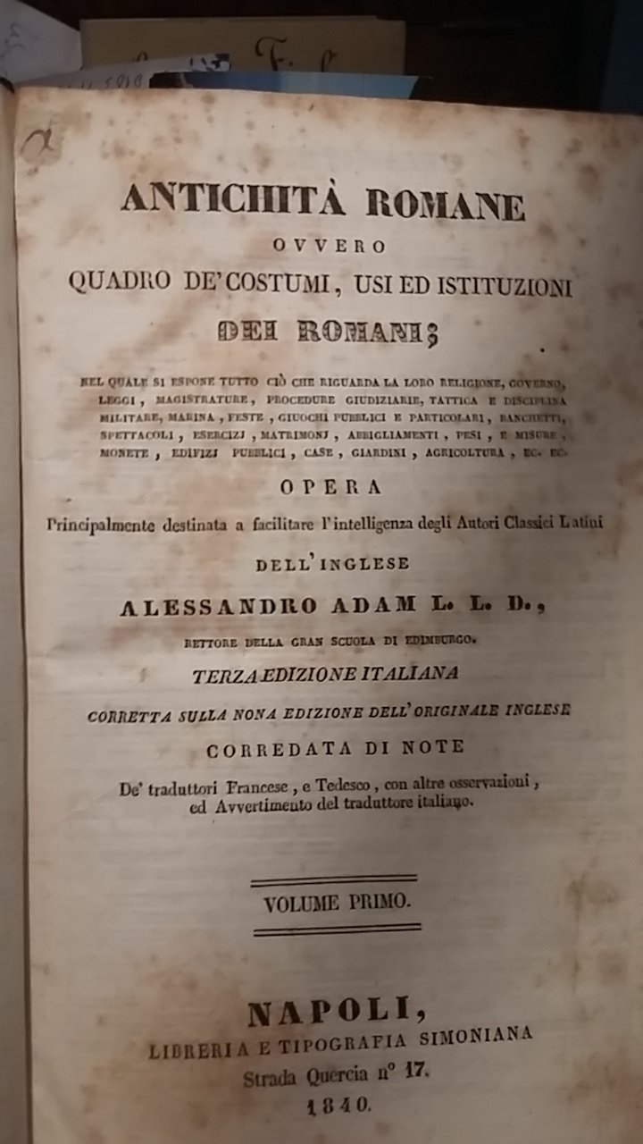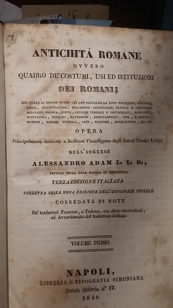ANTICHITA' ROMANE OVVERO QUADRO DE COSTUMI, USI ED ISTITUZIONI DEI ROMANI