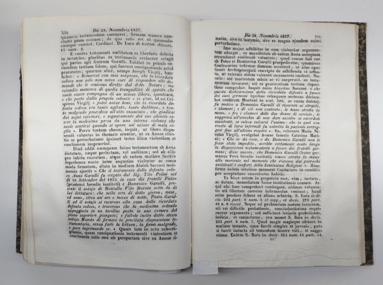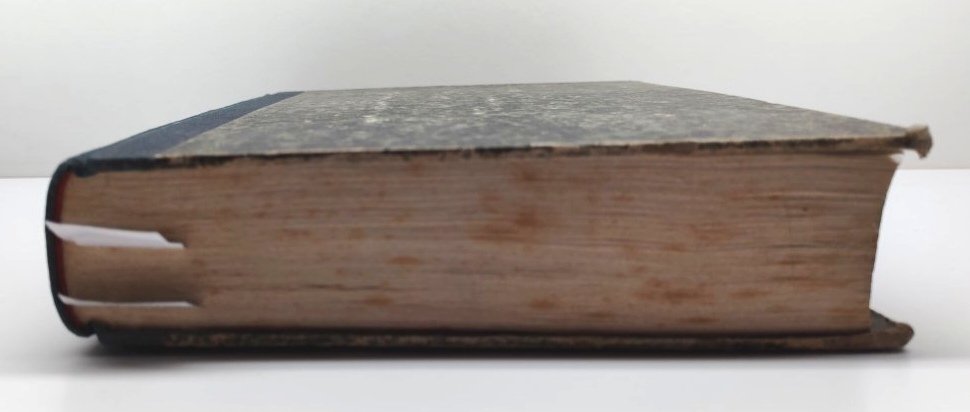 legatura rigida in mezza tela con piatti marmorizzati con lievi abrasioni e mancanze ai margini, dorso scolorito in tela con anno stampigliato in oro, segni di usura, tagli ingialliti con fioriture diffuse, carta croccante, alcune pagine di dimensioni leggermente ridotte al margine inferiore, piccolo strappo al margine inferiore di pagina 311 senza interessamento del testo, alcune pagine di dimensioni leggermente ridotte al margine inferiore, numero pagine 624 dimensioni cm 28,4 * 19,5 * 4,5