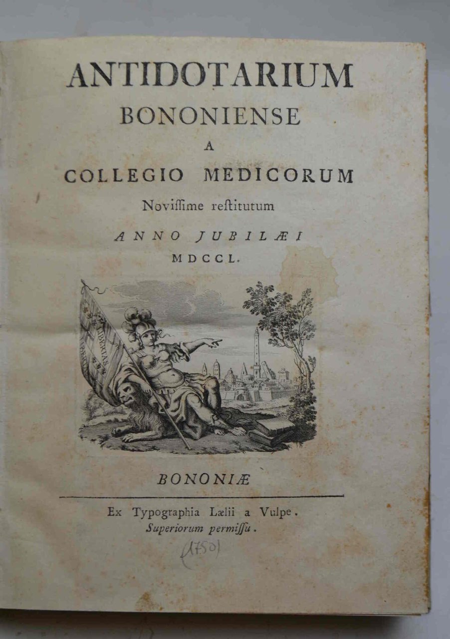 Antidotarium bononiense a collegio medicorum Novissime restitum Anno jubilaei MDCCL.