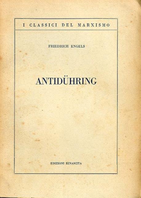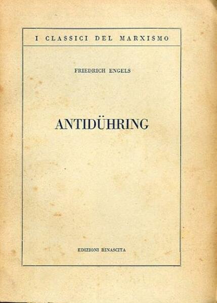 2. ed. 358 p. ; 22 x 15 cm. I classici del marxismo, 28. La scienza sovvertita del signor Eugen Dühring è un saggio di Friedrich Engels del 1878, più comunemente noto come l'Anti-Dühring. Quest'opera è uno dei maggiori contributi di Engels alla diffusione delle teorie del socialismo scientifico Traduzione di Giovanni Di Caria. Brossura editoriale, coperta in cartoncino flessibile di colore marrone con alette. Titolo impresso in nero al piatto e al dorso. Lievi segni del tempo alla coperta, al taglio e alle pagine interne (fioriture e ingiallimento della carta), per il resto libro integro. Codice libreria 6179.