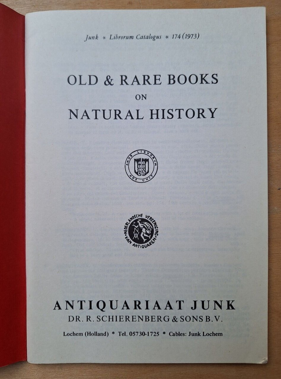 ANTIQUARIAAT JUNK NATURAL HISTORY OLD & RARE BOOKS CATALOGHIIn 8°, 33 volumi, legatura editoriale, copertina illustrata.Lievissimi segni del tempo .