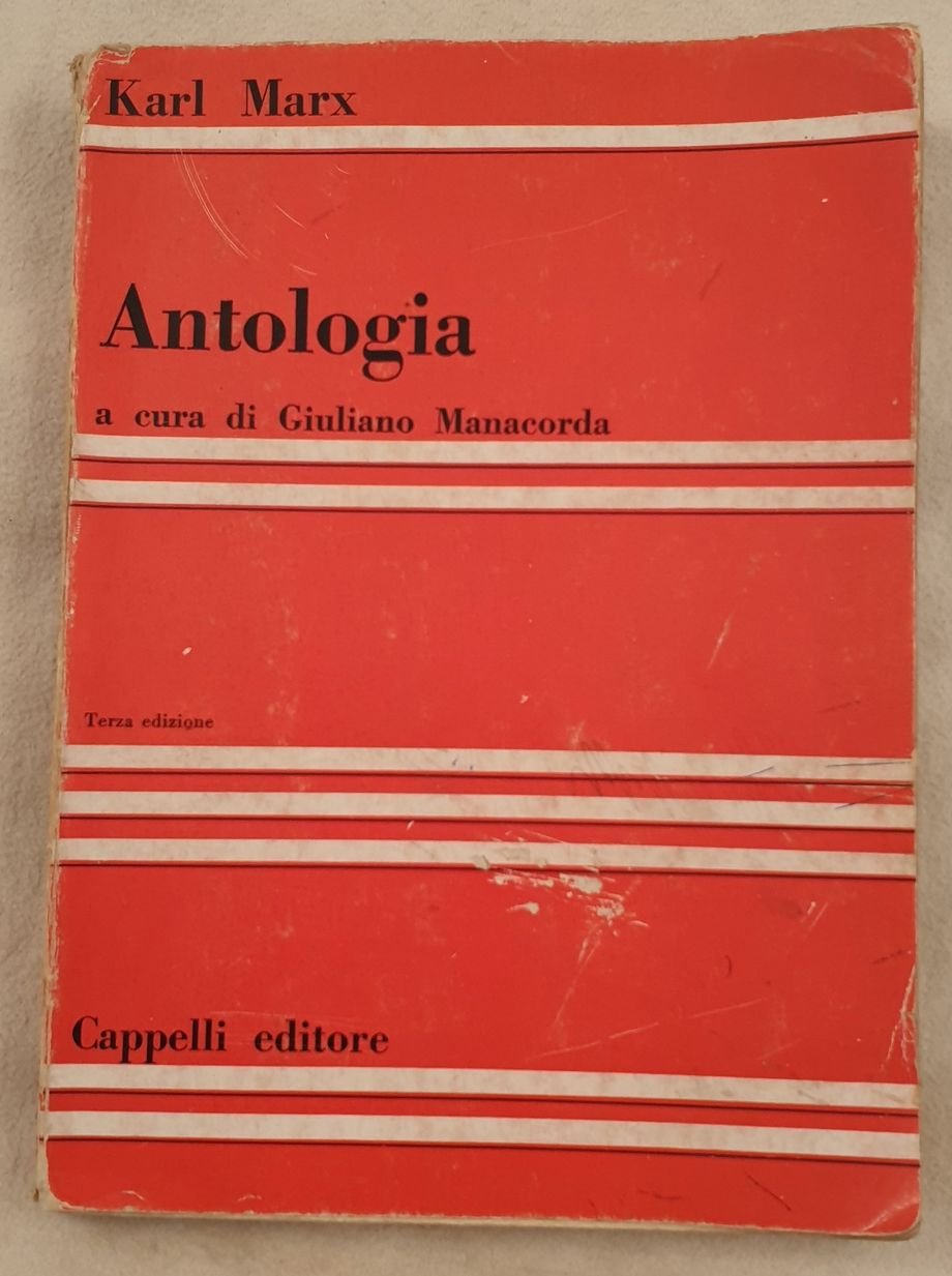 Edizione del 1970 della celebre antologia di Karl Marx (1818-1883). Terza edizone a cura di Giuliano Manacorda. In buone condizioni. Copertina editoriale in buone condizioni con lievi usure ai marginie dorso. Legatura in buone condizioni. Pagine in buone condizioni con fioriture. In 8. Cm 21,5x16. Pp. 236+(2). Edition of 1970 of the famous anthology by Karl Marx (1818-1883). third edition by Giuliano Manacorda. In good conditions. Editorial cover in good conditonsslightly worn in the edges and spine. Binding in good conditions. Pages in good conditions with foxings. In 8. Cm 21,5x16. Pp. 236+(2).