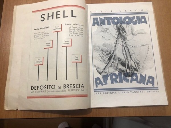 Illustrazione ripetuta al frontespizio, ritratti fotografici in bianco e nero a piena pagina di Vittorio Emanuele III e Mussolini, testo su una e due colonne, illustrazioni incise e fotografiche (anche a piena pagina).